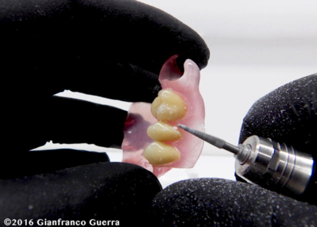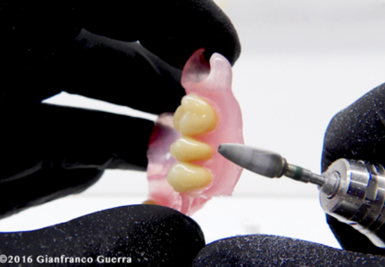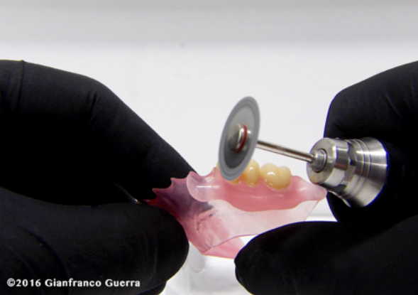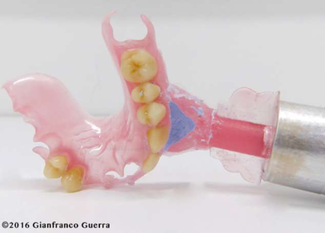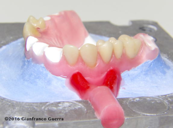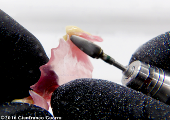 Nezapomeňte frézou odstranit materiál z aproximálního prostoru. Zubní protéza je nyní připravena pro voskovou modelaci.